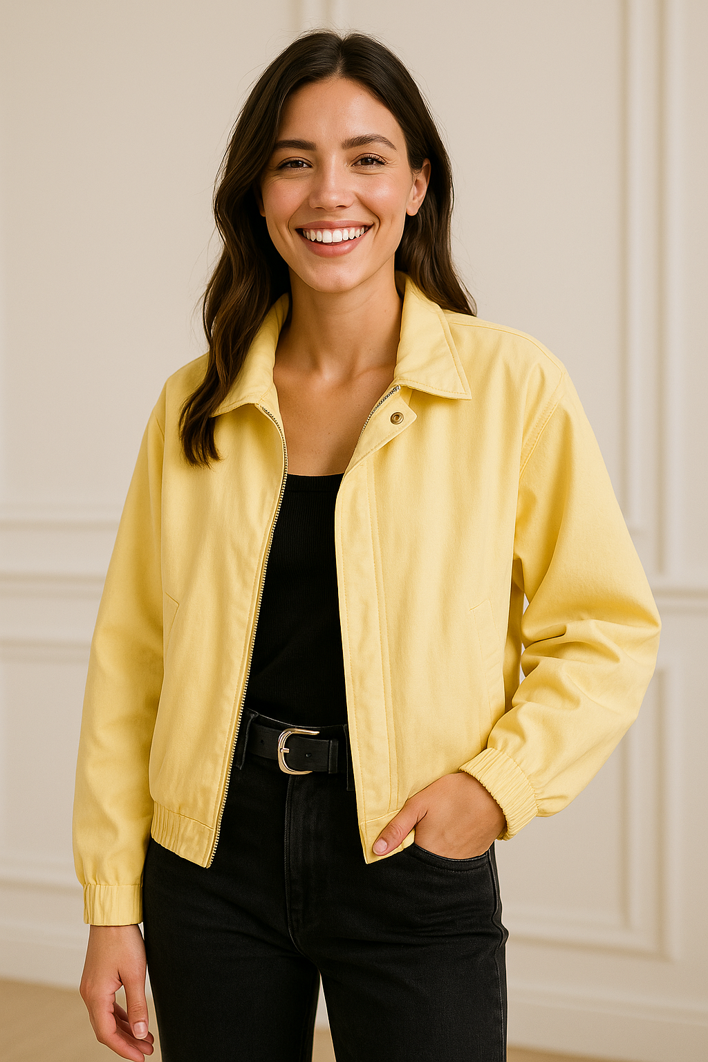 Stralend, licht en onweerstaanbaar stijlvol – maak kennis met LIVIANE™, het butter yellow jasje dat elke outfit een frisse zomerboost geeft. Dit jasje is niet alleen een trend, het is de zomer. Gemaakt van ademende, zachte stof en ontworpen met een flatterende pasvorm die moeiteloos combineert met je favoriete jurken, shorts of jeans.