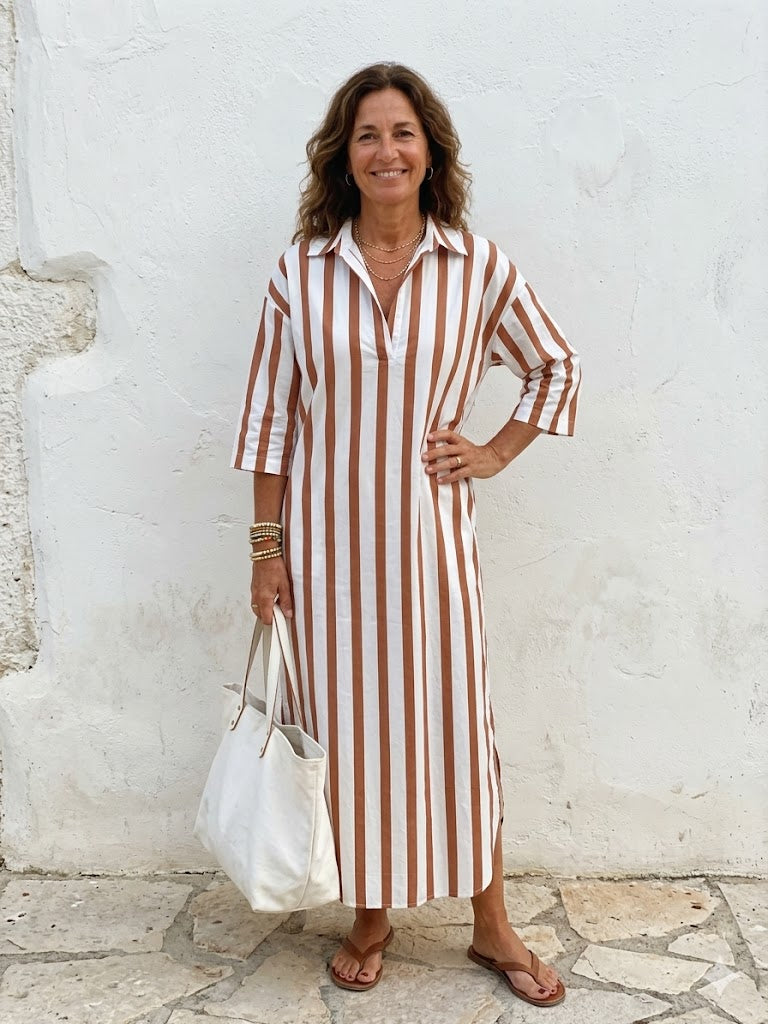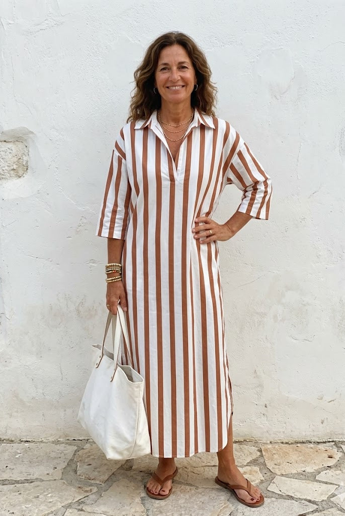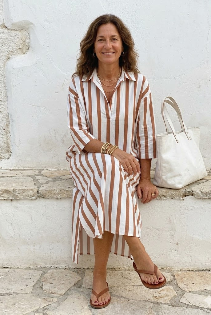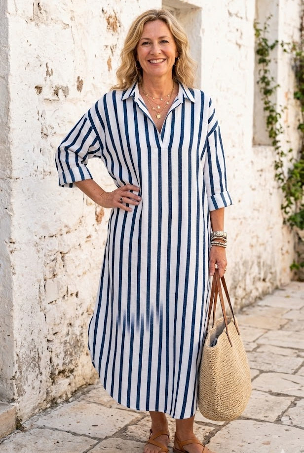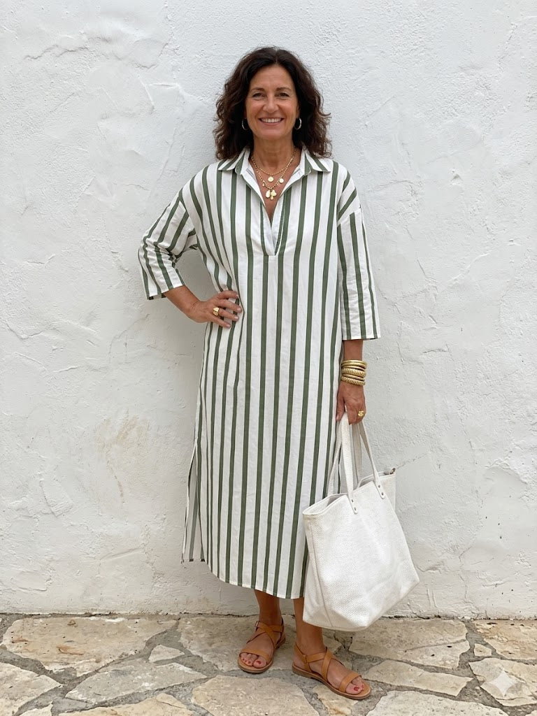 De zachte, sneldrogende stof zorgt voor een fris gevoel, zelfs op de warmste dagen. En met de subtiele zijzakken combineert Leona schoonheid met gemak – perfect voor de vrouw die het allemaal wil: moeiteloos chic en functioneel.